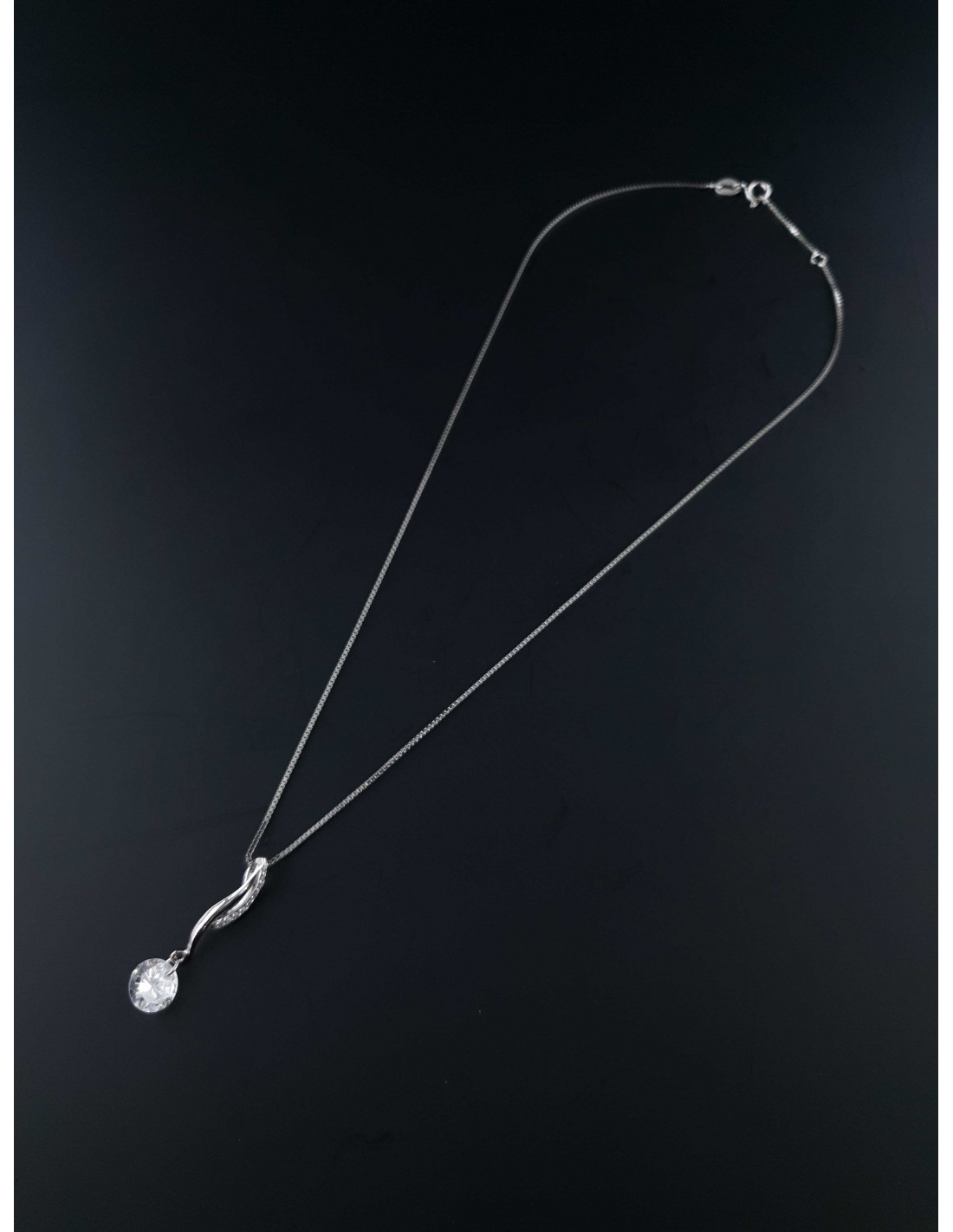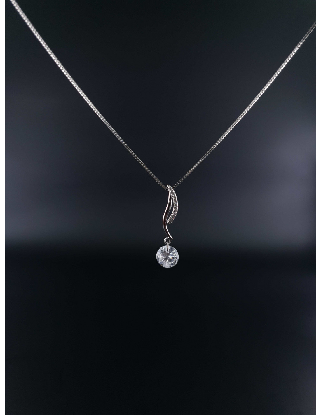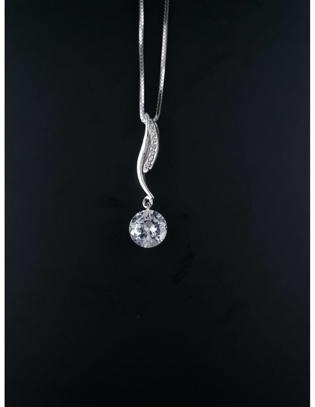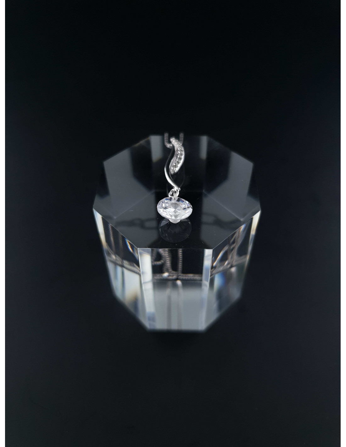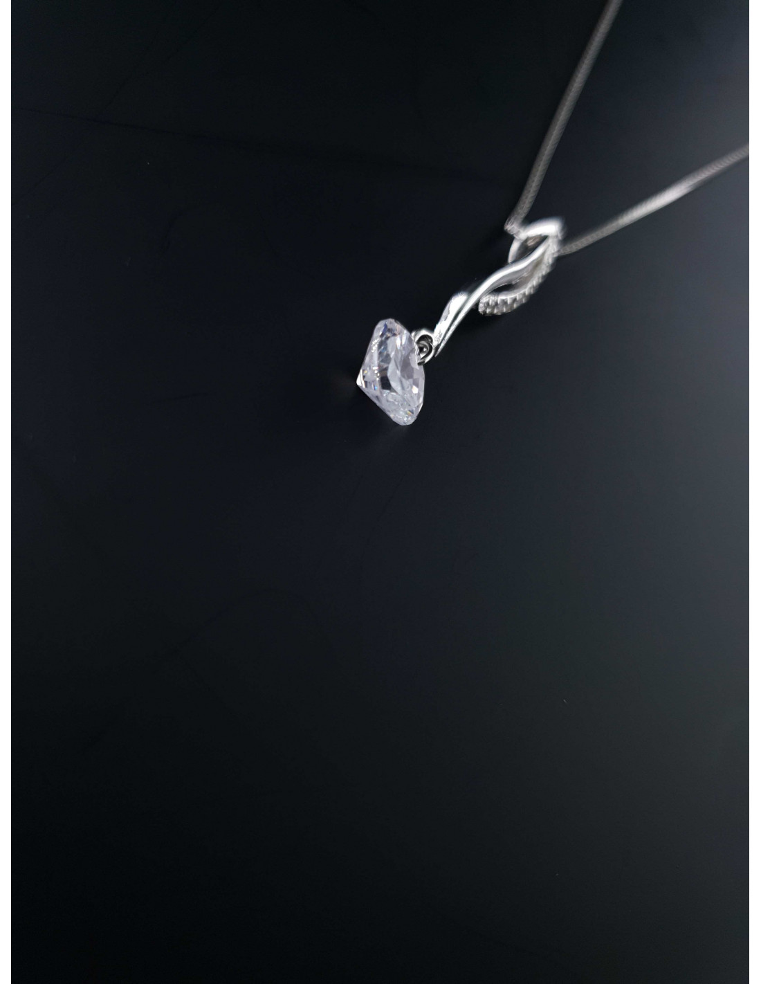 Collier Argent et pendentif floral serti Oxyde de zirconium et Crystal blanc