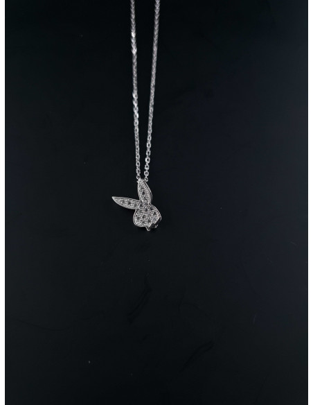Collier en Argent et pendentif motif lapin en Oxyde de Zirconium